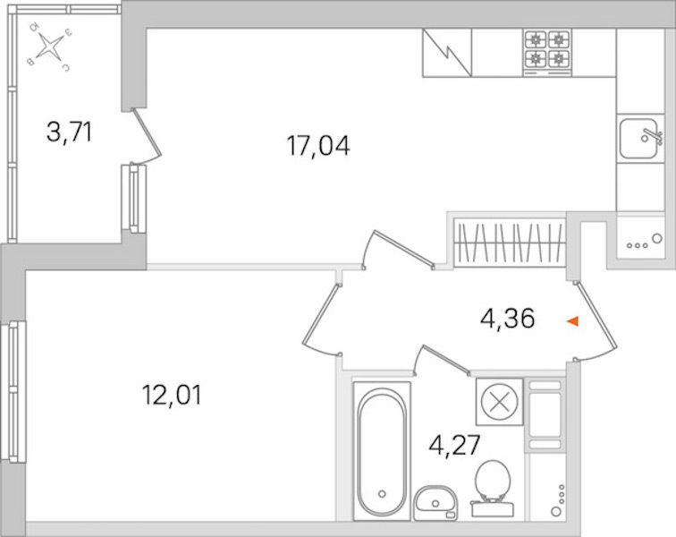 - Площадь кухни17,04 м2