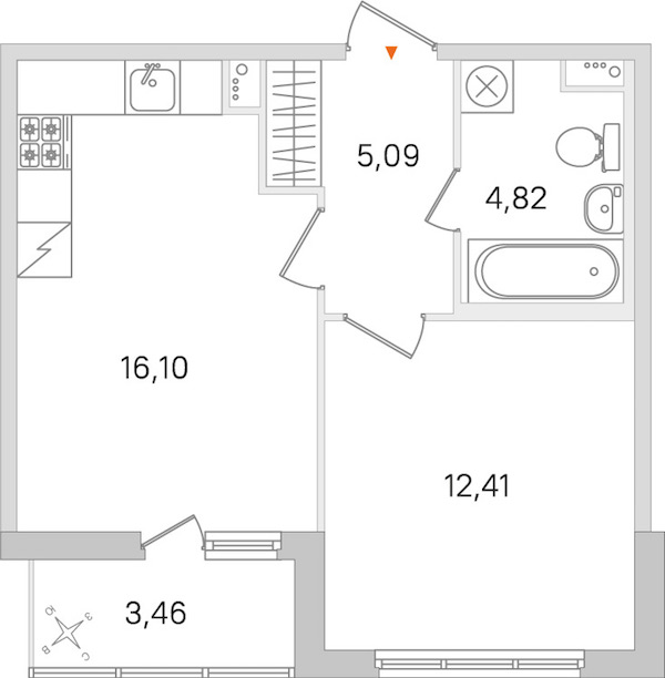 Однокомнатная квартира на 1-ом этаже 38,42 кв.м