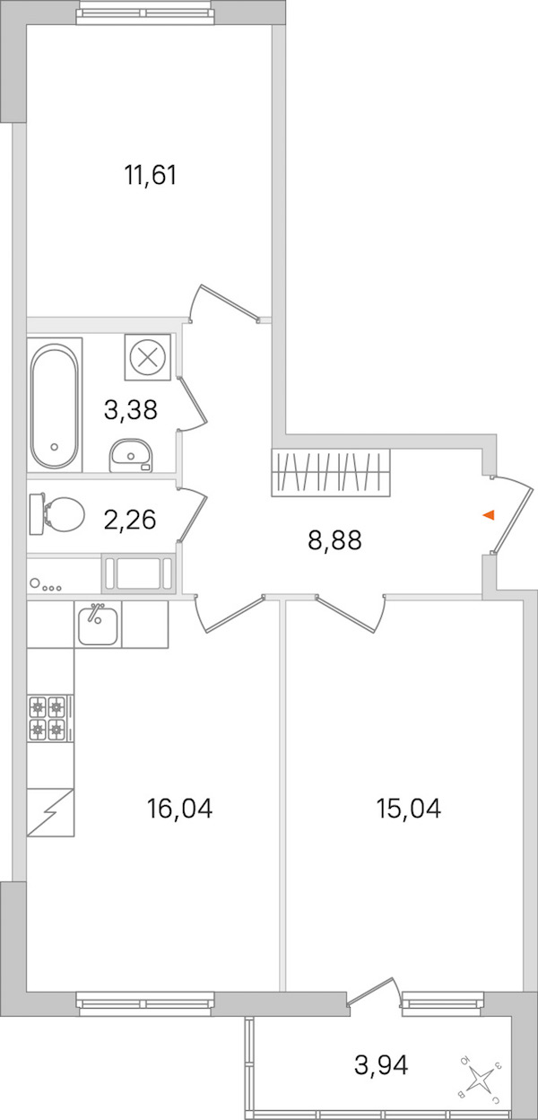 • Площадь кухни16,04 м2