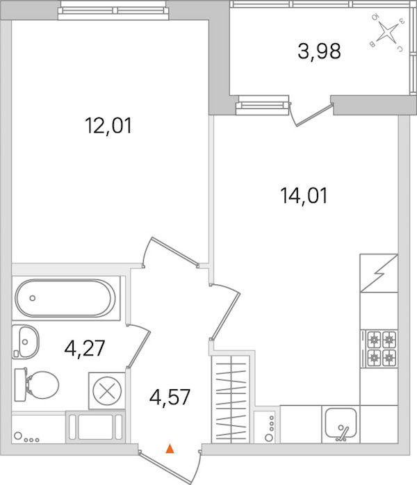 Однокомнатная квартира на 3-ем этаже 34,86 кв.м