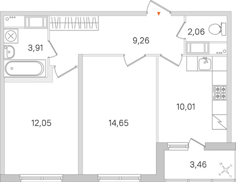 Двухкомнатная квартира на 5-ом этаже 51,94 кв.м