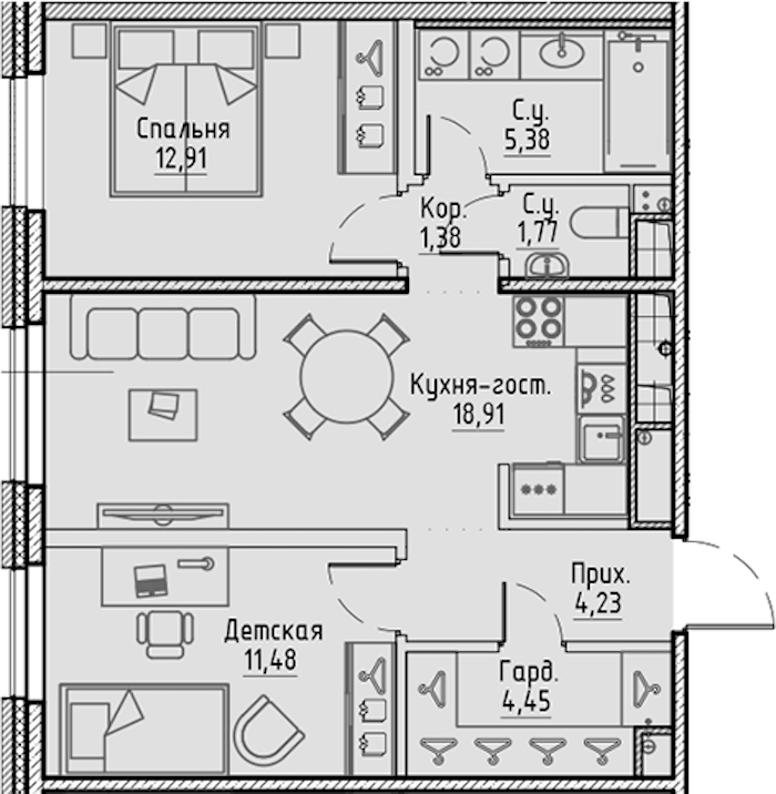 • Площадь кухни18,91 м2
