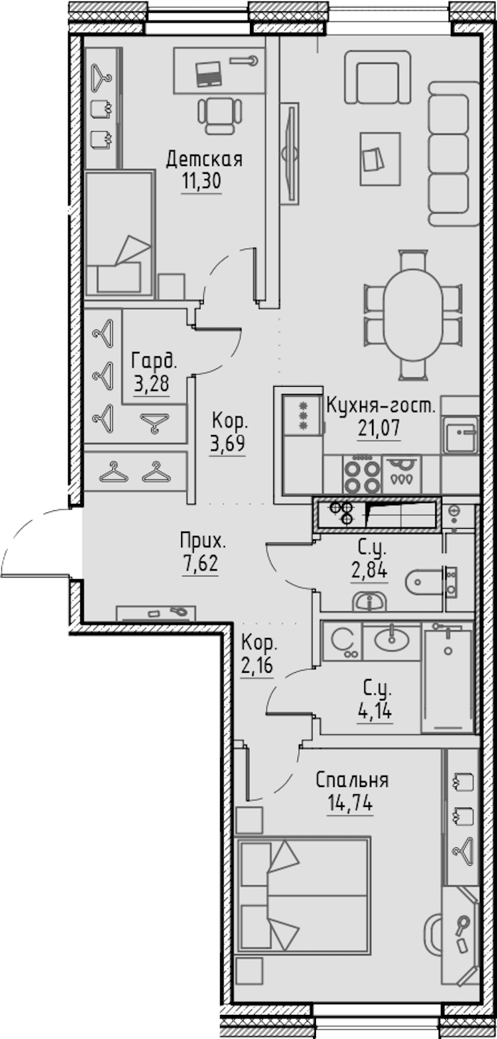 - Площадь кухни21,07 м2