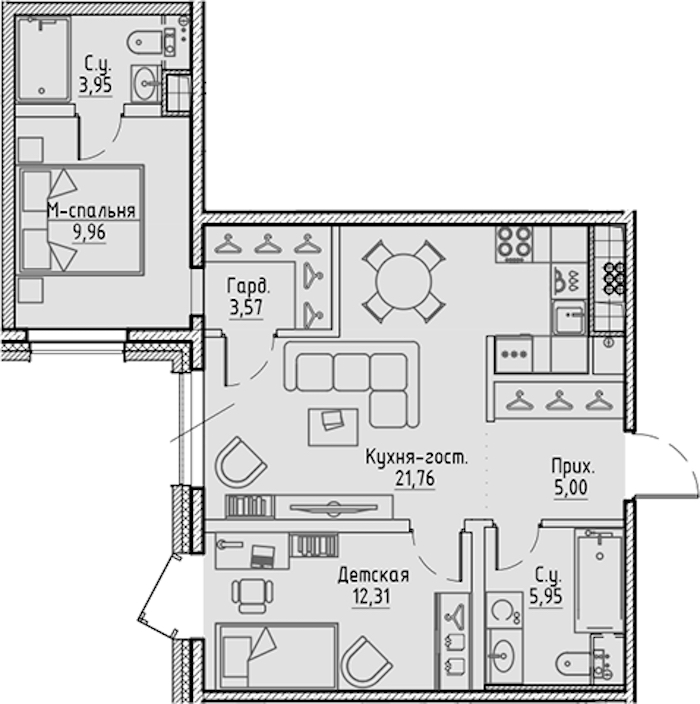 - Площадь кухни21,76 м2