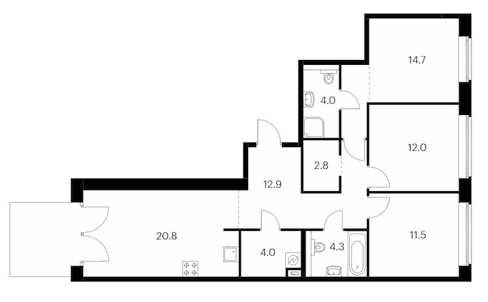 - Площадь кухни20,8 м2