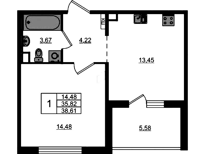 • Площадь38,61 м2