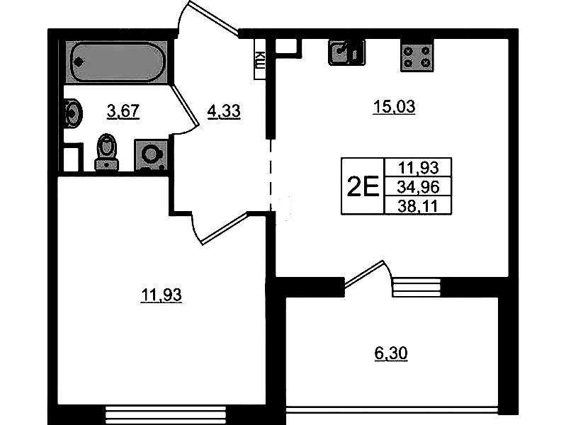 Однокомнатная квартира на 12-ом этаже 38,11 кв.м