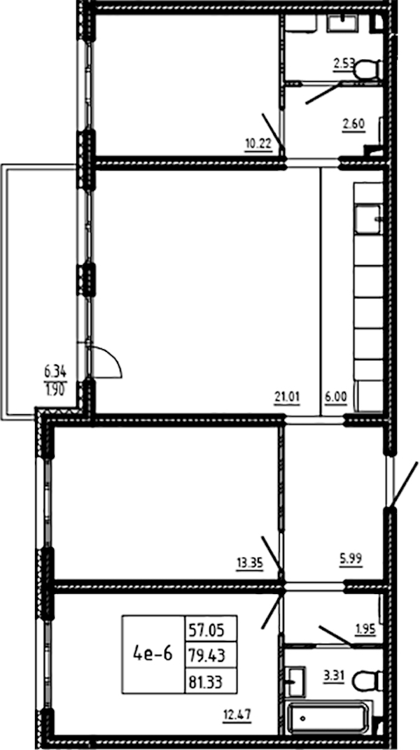 Трёхкомнатная квартира на 12-ом этаже 81,33 кв.м