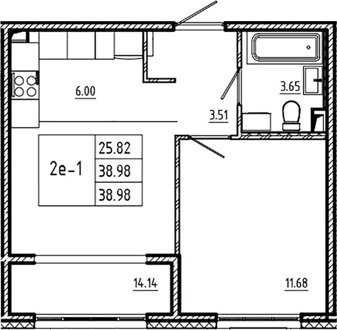 Однокомнатная квартира на 1-ом этаже 38,98 кв.м