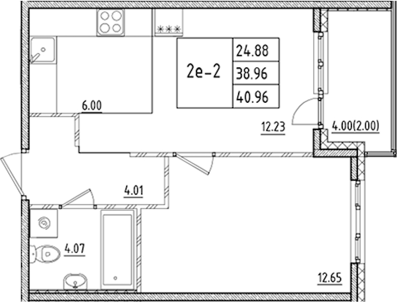 - Площадь40,96 м2
