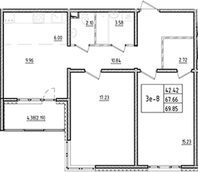 - Площадь69,85 м2