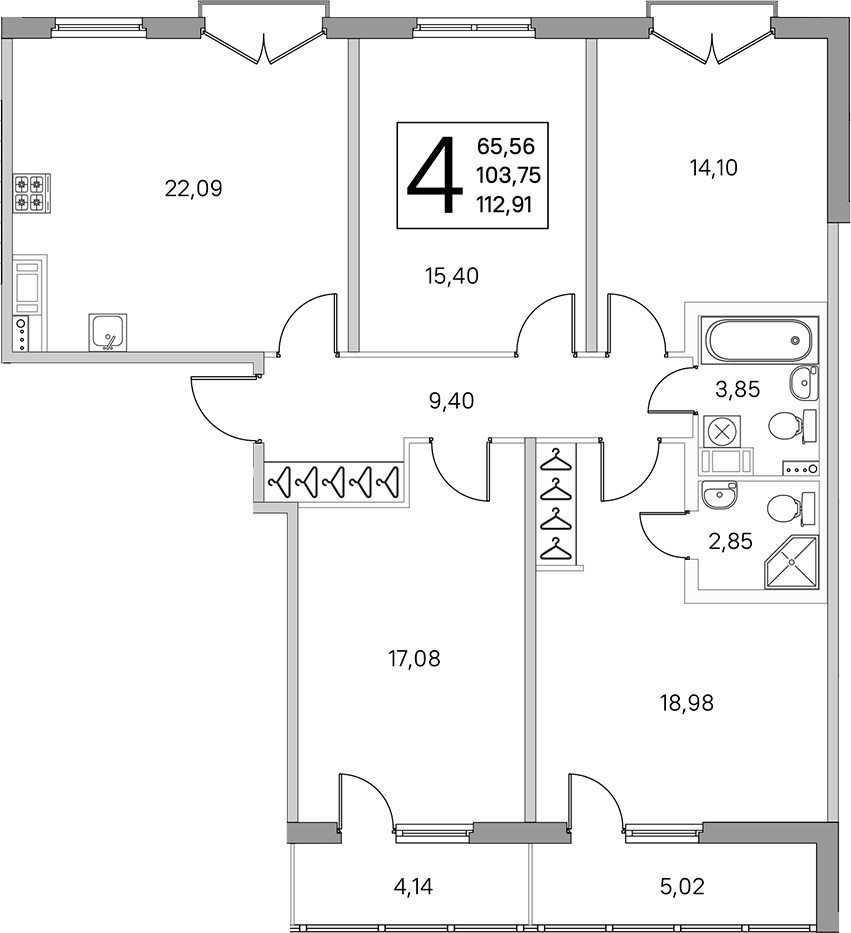 - Площадь кухни22,09 м2