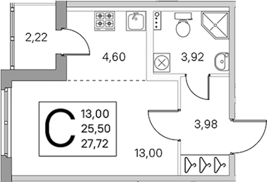 - Площадь25,5 м2