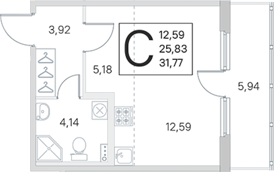 • Площадь25,83 м2