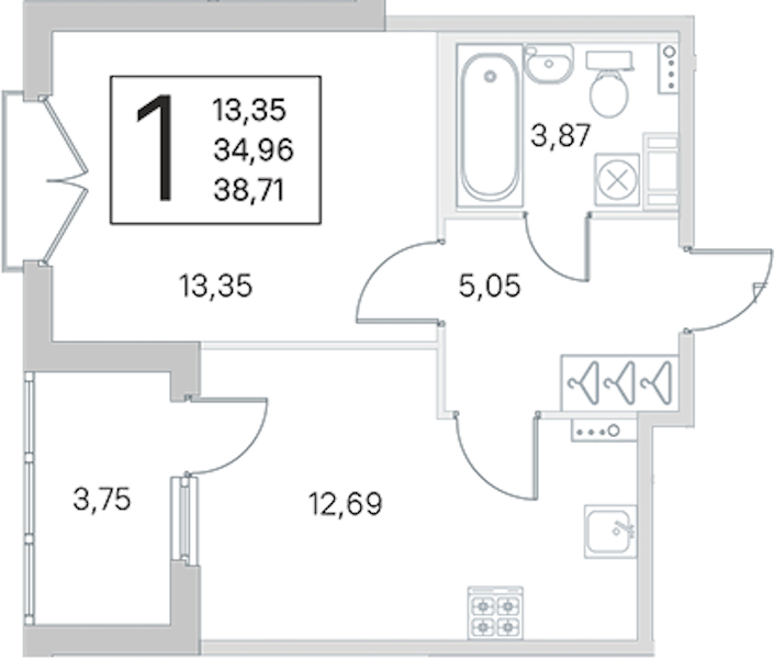 - Площадь34,96 м2
