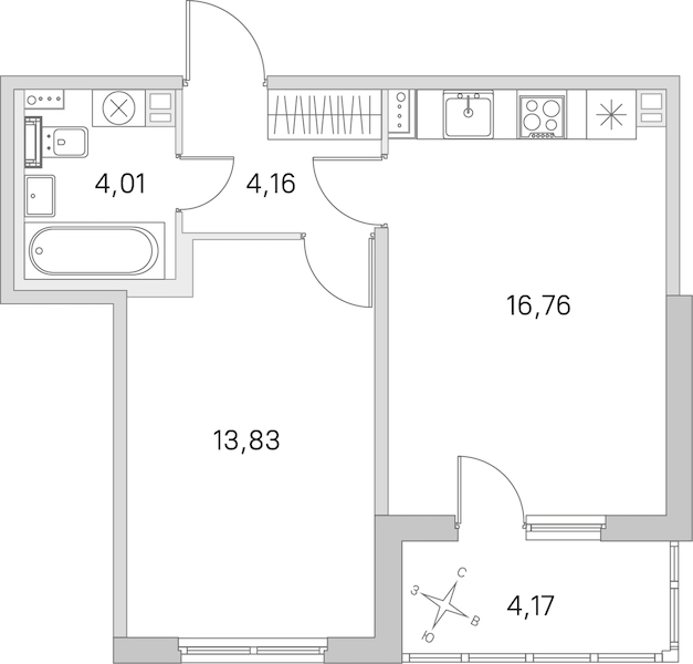 - Площадь кухни16,76 м2