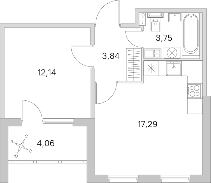 • Площадь кухни17,29 м2