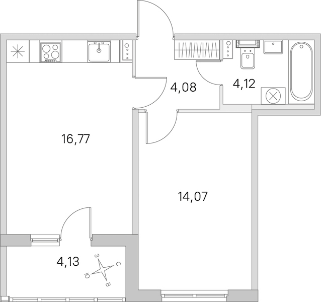 - Площадь кухни16,77 м2