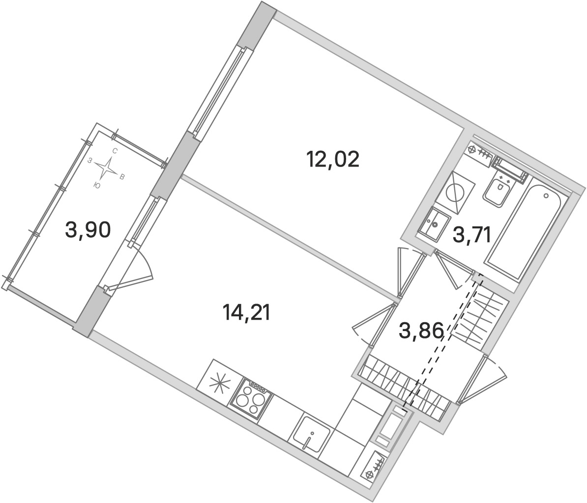 • Площадь кухни14,21 м2