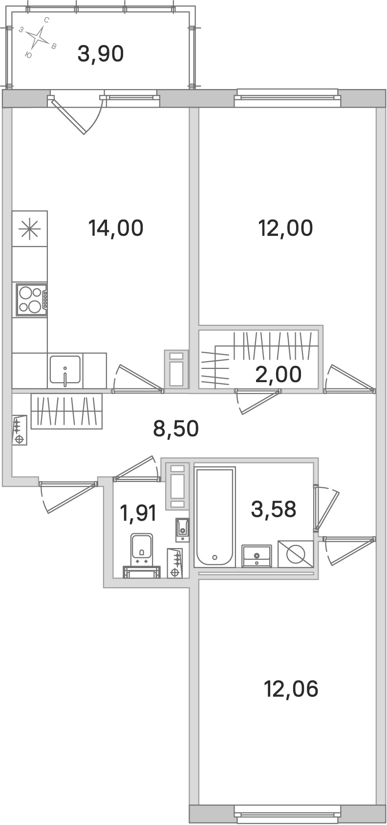 • Площадь кухни14 м2