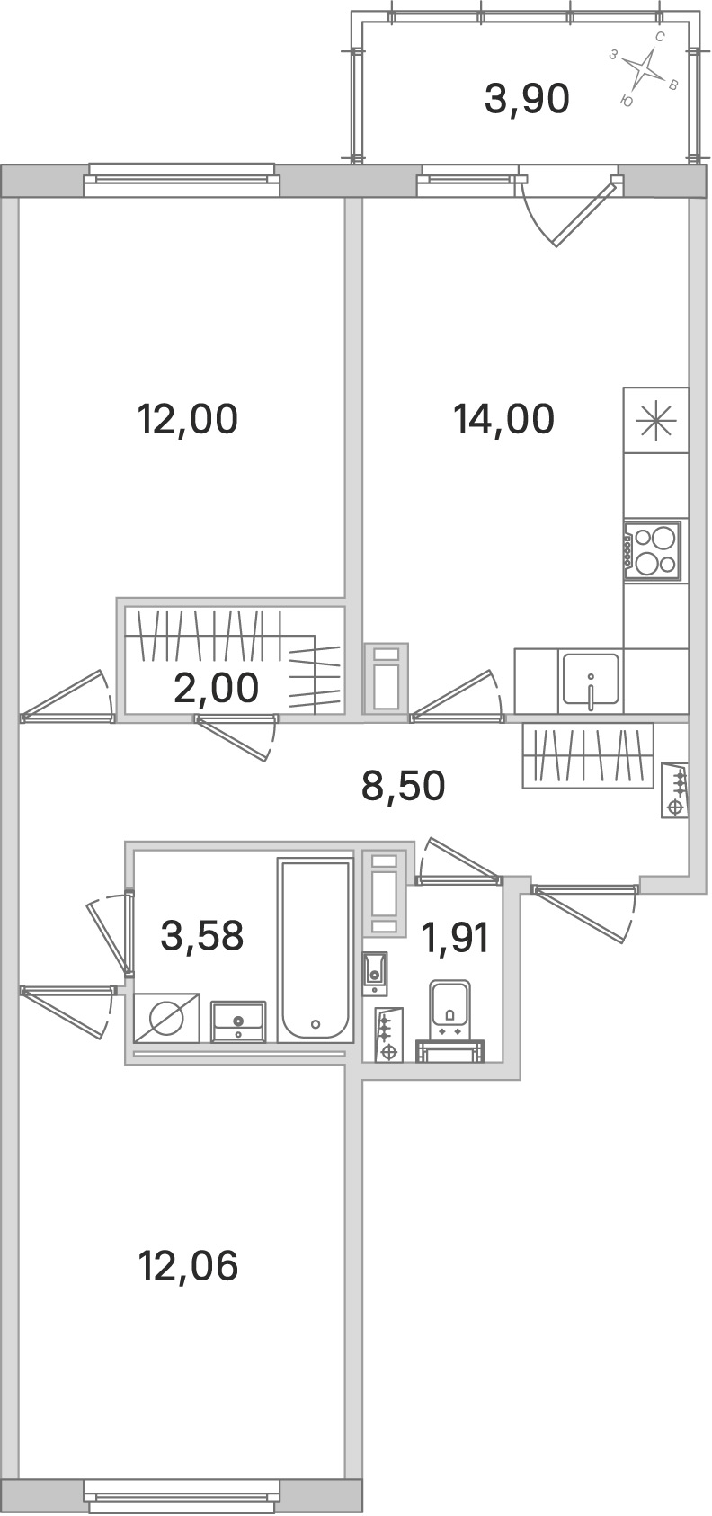 - Площадь54,05 м2