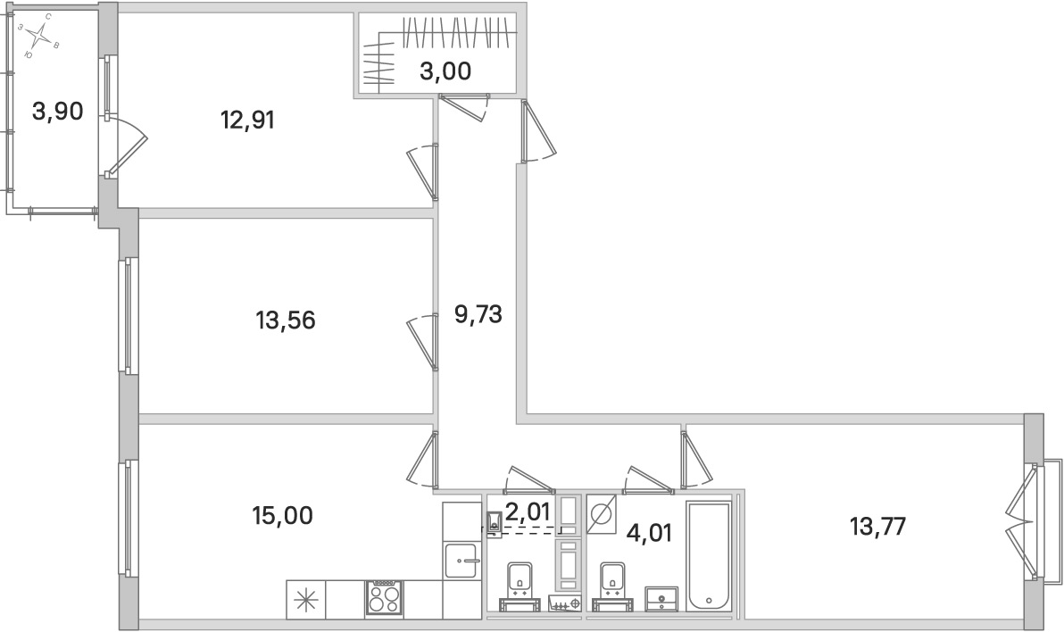 - Количество комнат3