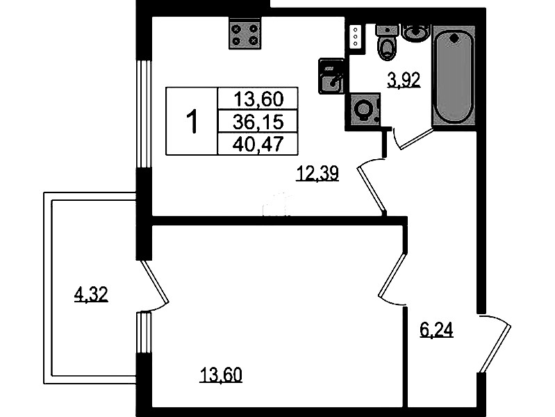 - Площадь36,15 м2