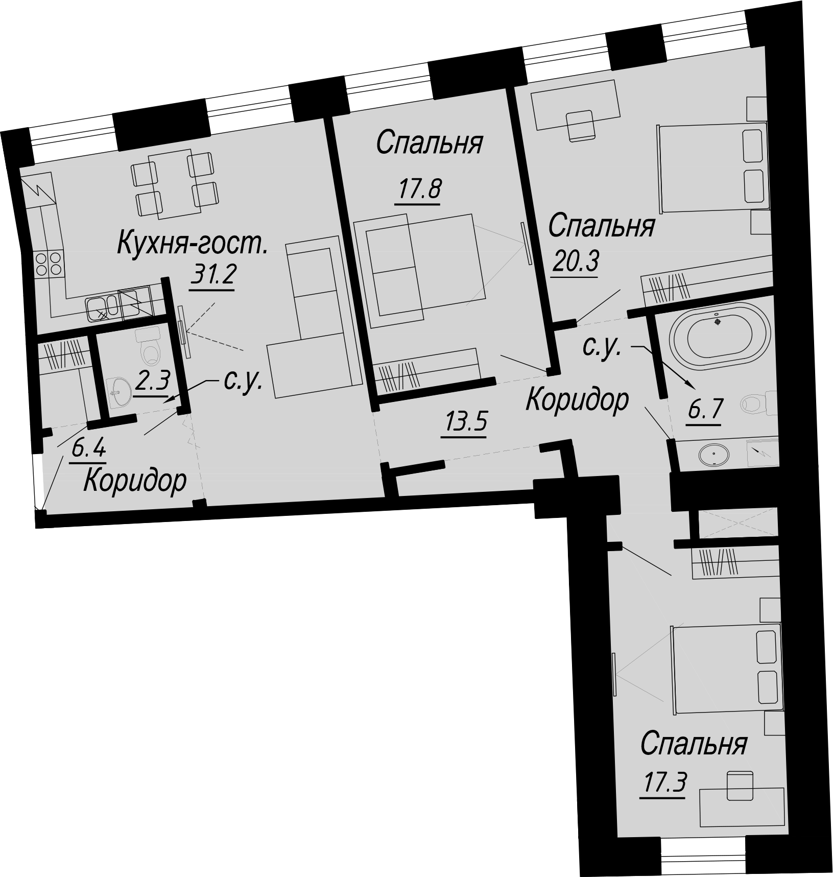 - Площадь кухни31,2 м2