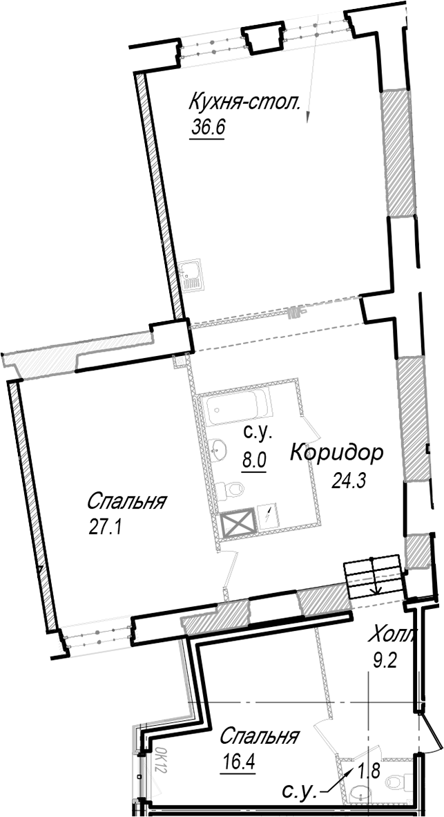 - Площадь кухни36,6 м2