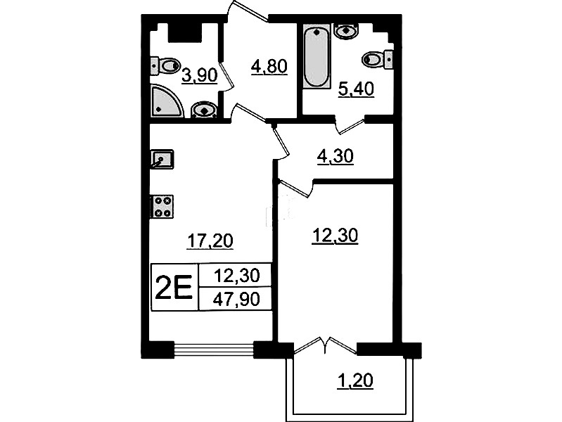 - Площадь47,9 м2