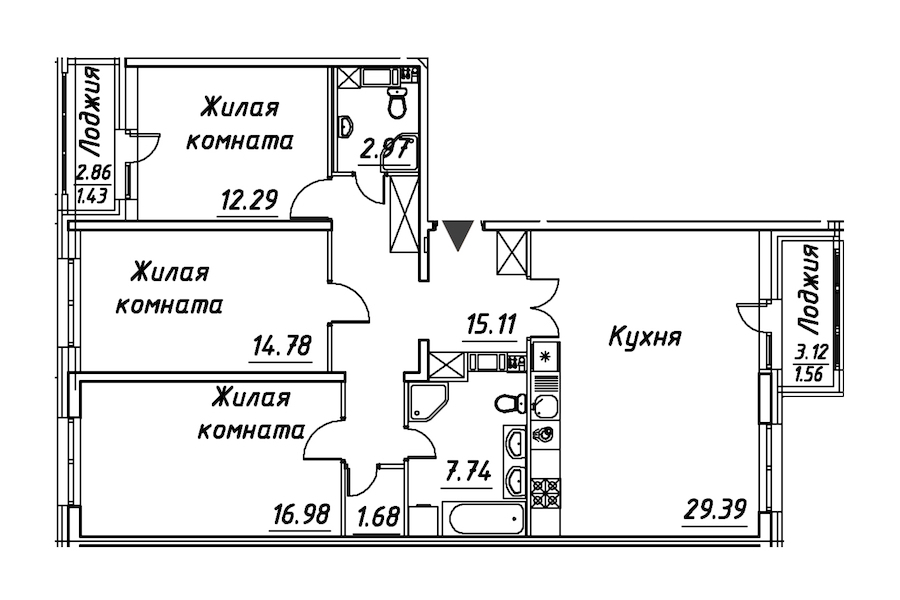 - Площадь кухни29,39 м2