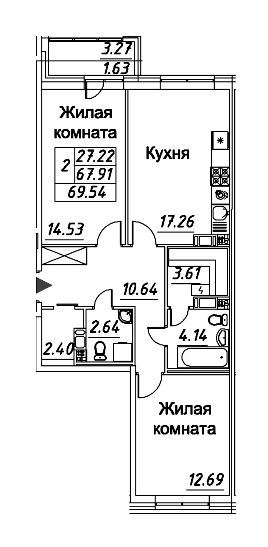 - Площадь69,54 м2