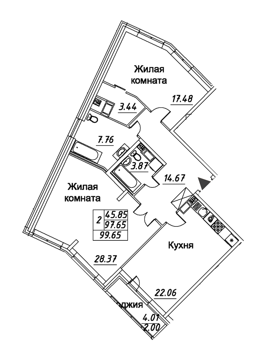 - Площадь99,65 м2