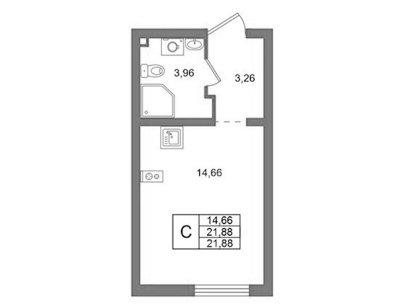 Квартира-студия на 2-ом этаже 21,88 кв.м