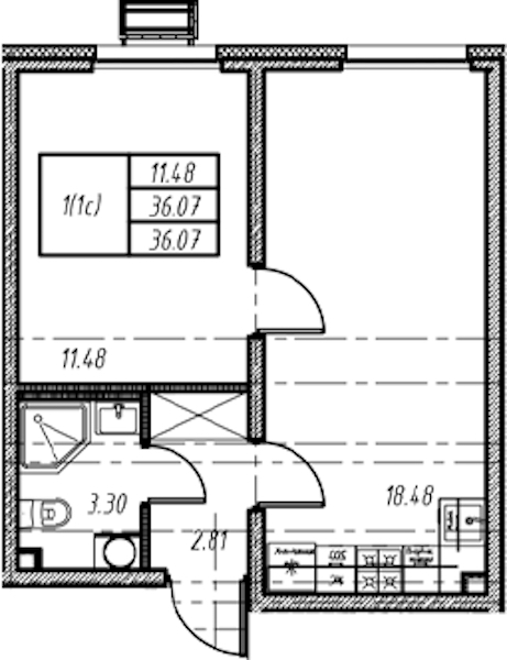 • Площадь36,07 м2
