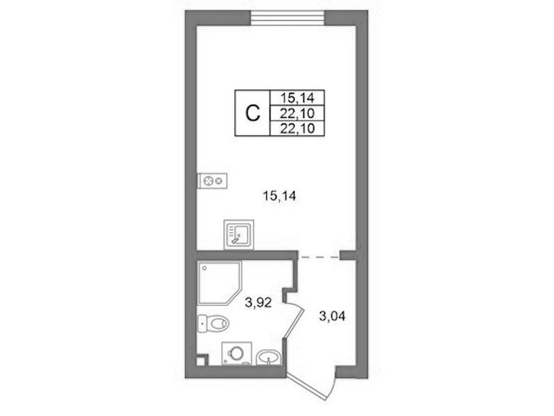 Квартира-студия на 2-ом этаже 22,1 кв.м