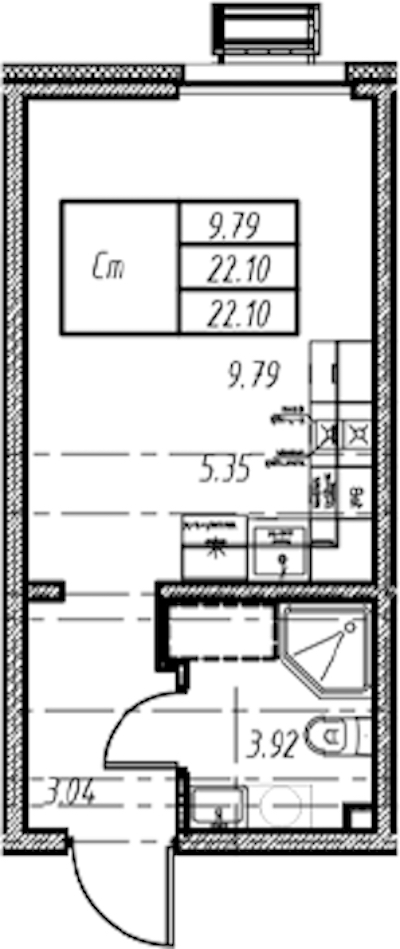 Квартира-студия на 2-ом этаже 22,1 кв.м