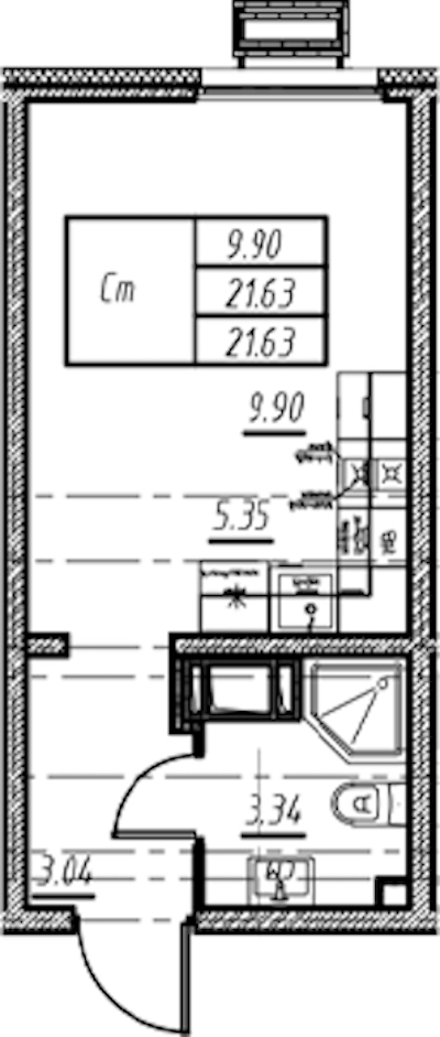 Квартира-студия на 3-ем этаже 21,63 кв.м