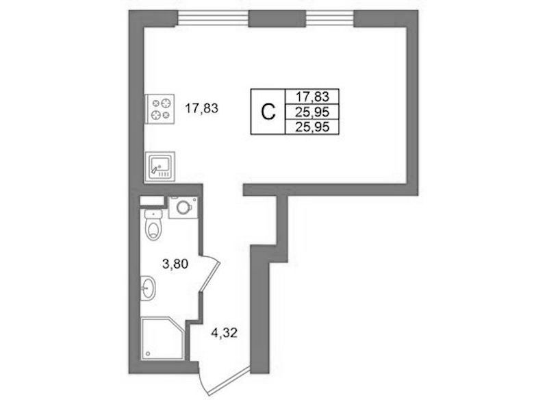 Квартира-студия на 13-ом этаже 25,95 кв.м