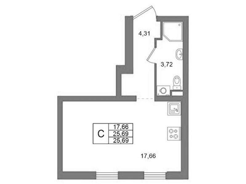- Площадь25,69 м2