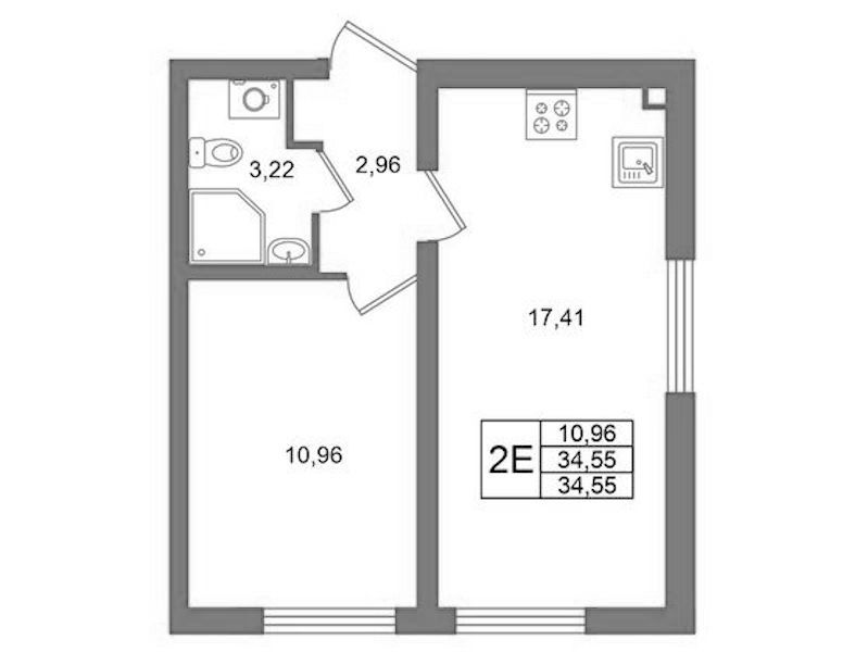 - Площадь34,55 м2