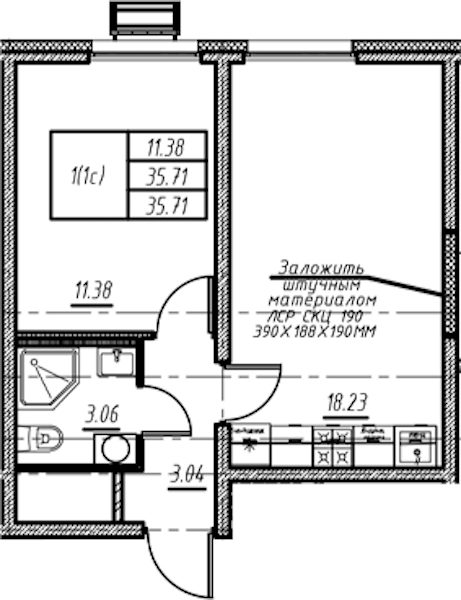 - Площадь35,71 м2