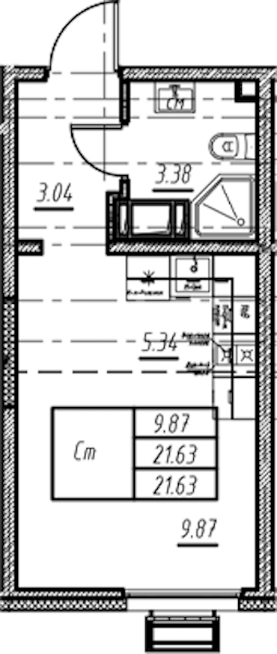 Квартира-студия на 5-ом этаже 21,63 кв.м