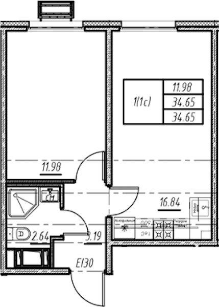 • Площадь34,65 м2