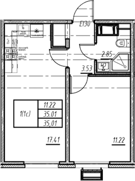 - Площадь35,01 м2