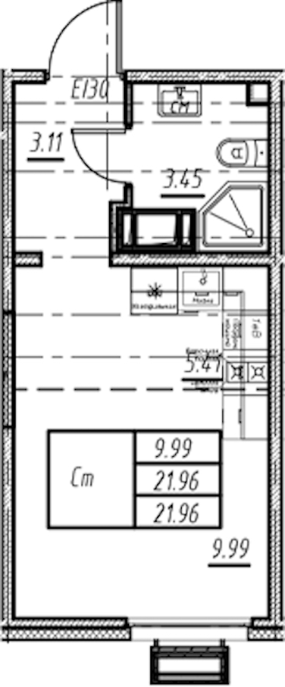 Квартира-студия на 20-ом этаже 21,96 кв.м
