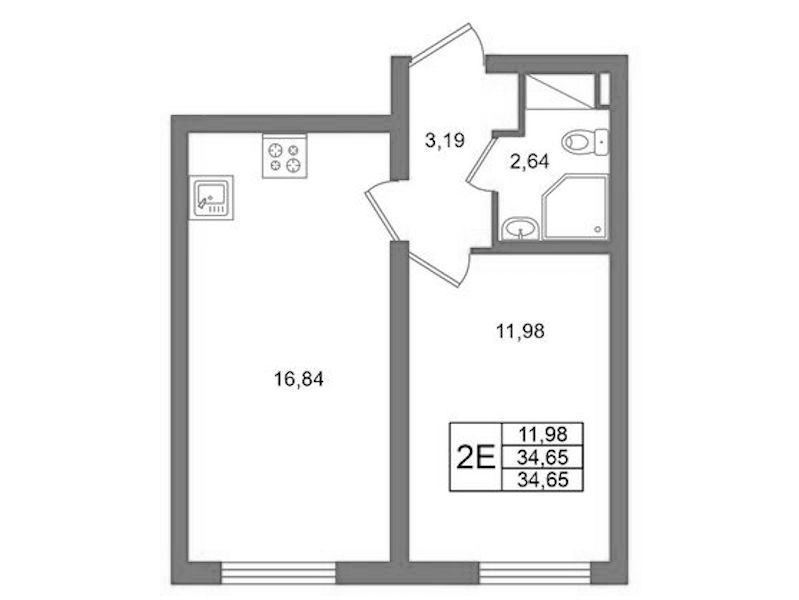 Однокомнатная квартира на 10-ом этаже 34,65 кв.м