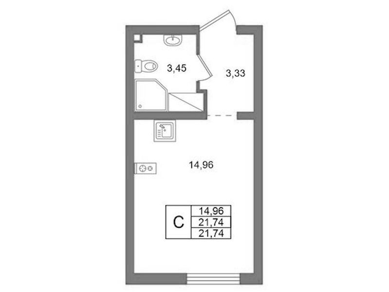 Квартира-студия на 8-ом этаже 21,74 кв.м