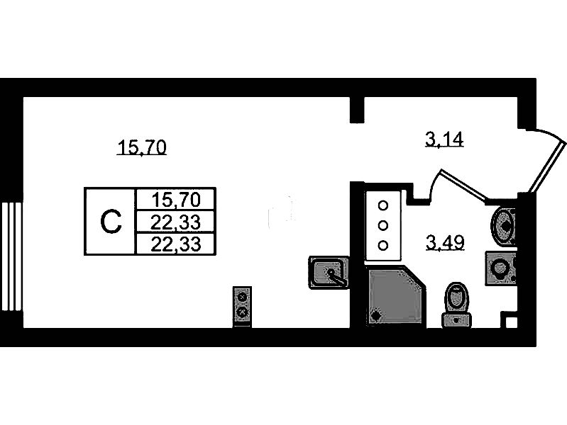 • Площадь22,63 м2