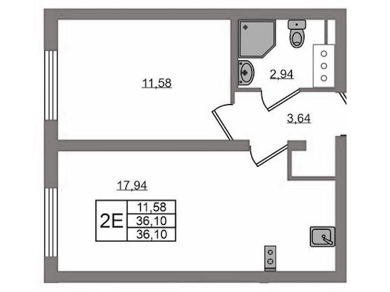- Площадь35,98 м2